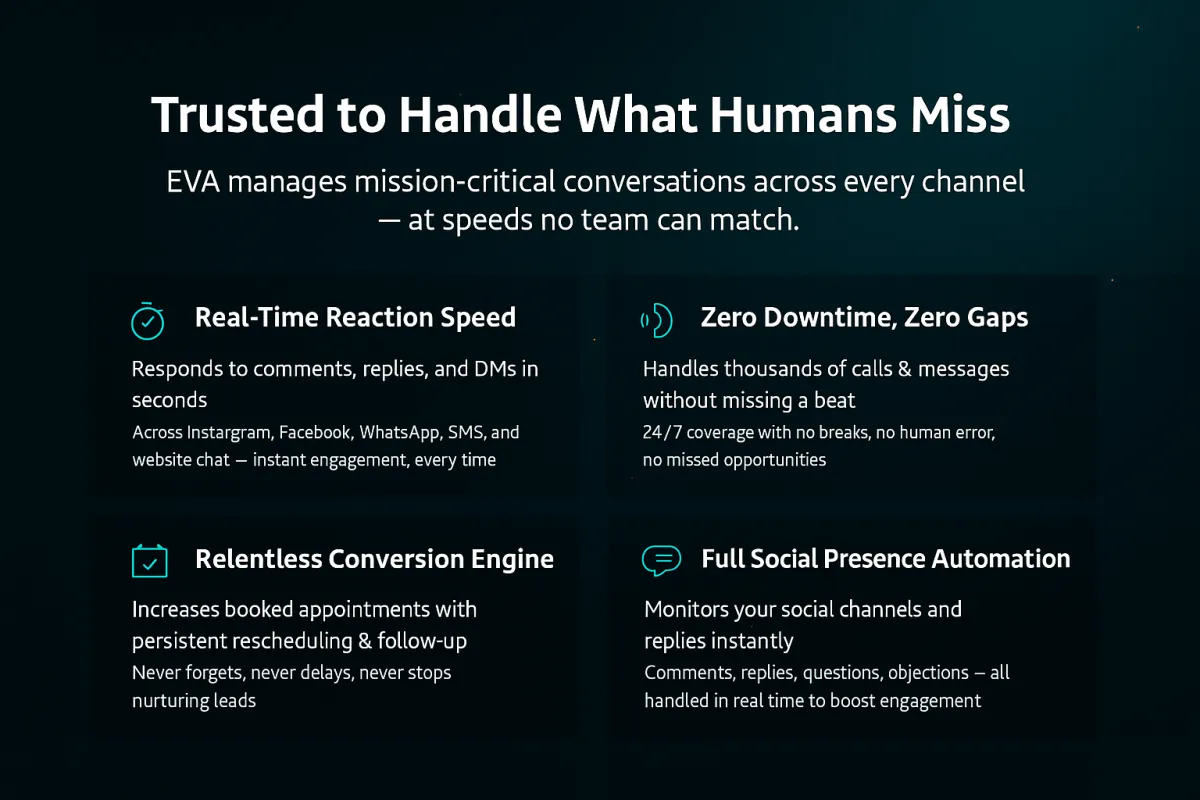 Core EVA AI engine, CRM, and EVA Ops are part of every plan.
